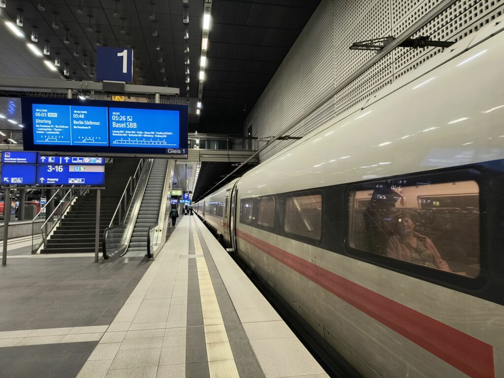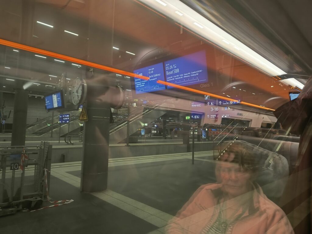 Der Zug fuhr pünktlich los. Dann kam der Schaffner. Er erklärte uns auf Nachfrage, daß der gebuchte Zug bereits um 04:45 vom Bahnhof Gesundbrunnen gefahren sei…