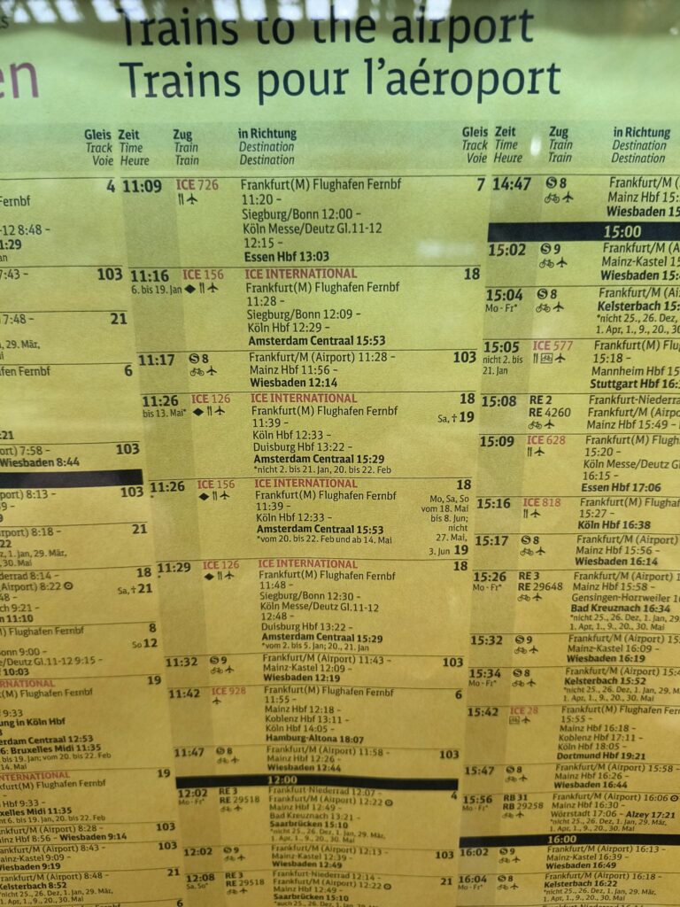 Dann umsteigen in einen anderen ICE zum Flughafen. Der wurde uns wirklich von einer Auskunft -Schaffner – empfohlen.