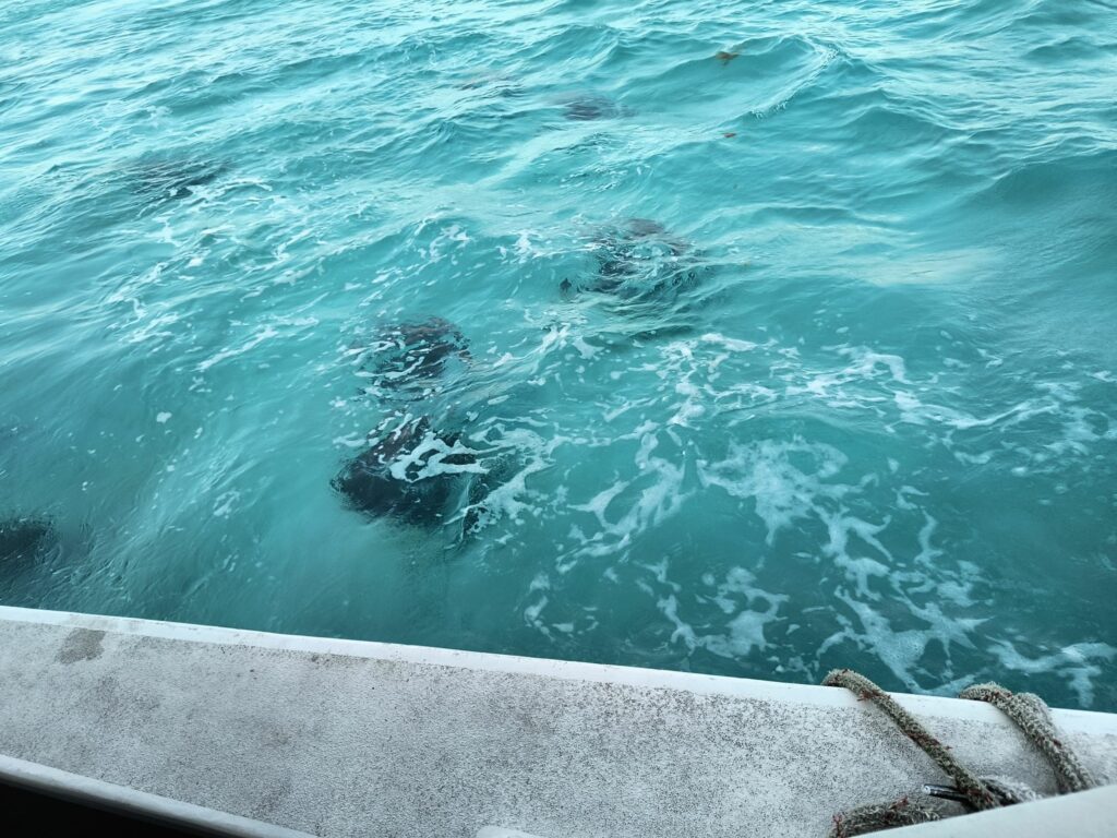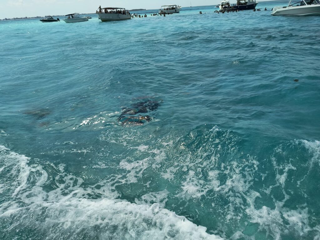 Die angesagten Rochen lagen gemütlich unter Wasser irgendwie rum.