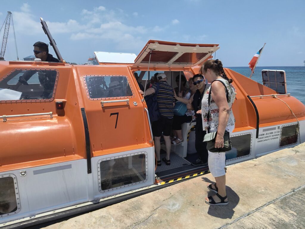 Bereits um 08:30 Uhr mit einem Tender Boot an Land gefahren.