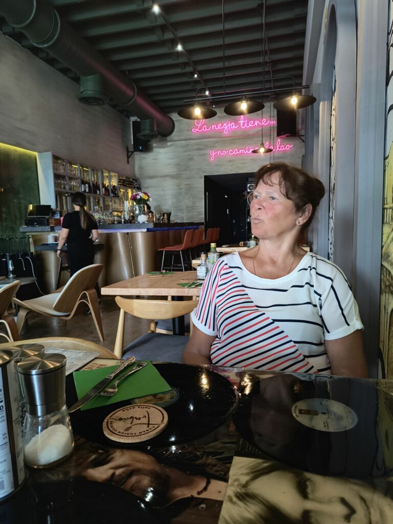 Danach verlassen des Terminals. Vor dem Terminal keine Sitzgelegenheiten, dafür Sonne pur ( ca 29 Grad Celsius)
